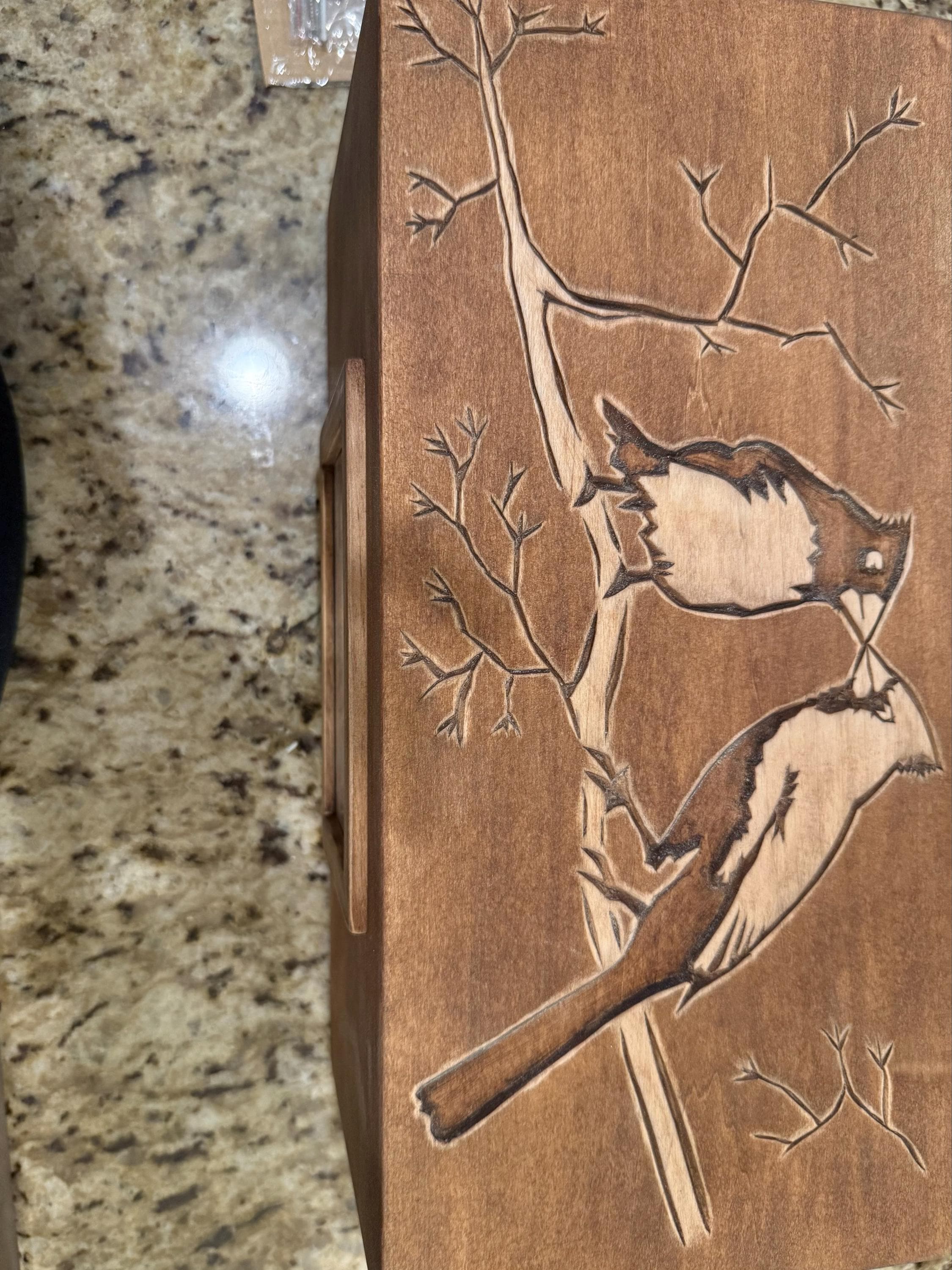 Such a beautiful Urn! My father had a vision in mind for a wood urn with cardinal engraving and this was the best one by far. I have searched everywhere and Etsy never fails to disappoint when finding original pieces by such talented artists. It shipped from Poland to Pennsylvania. Easy transaction and quick shipping process. I was surprised.
