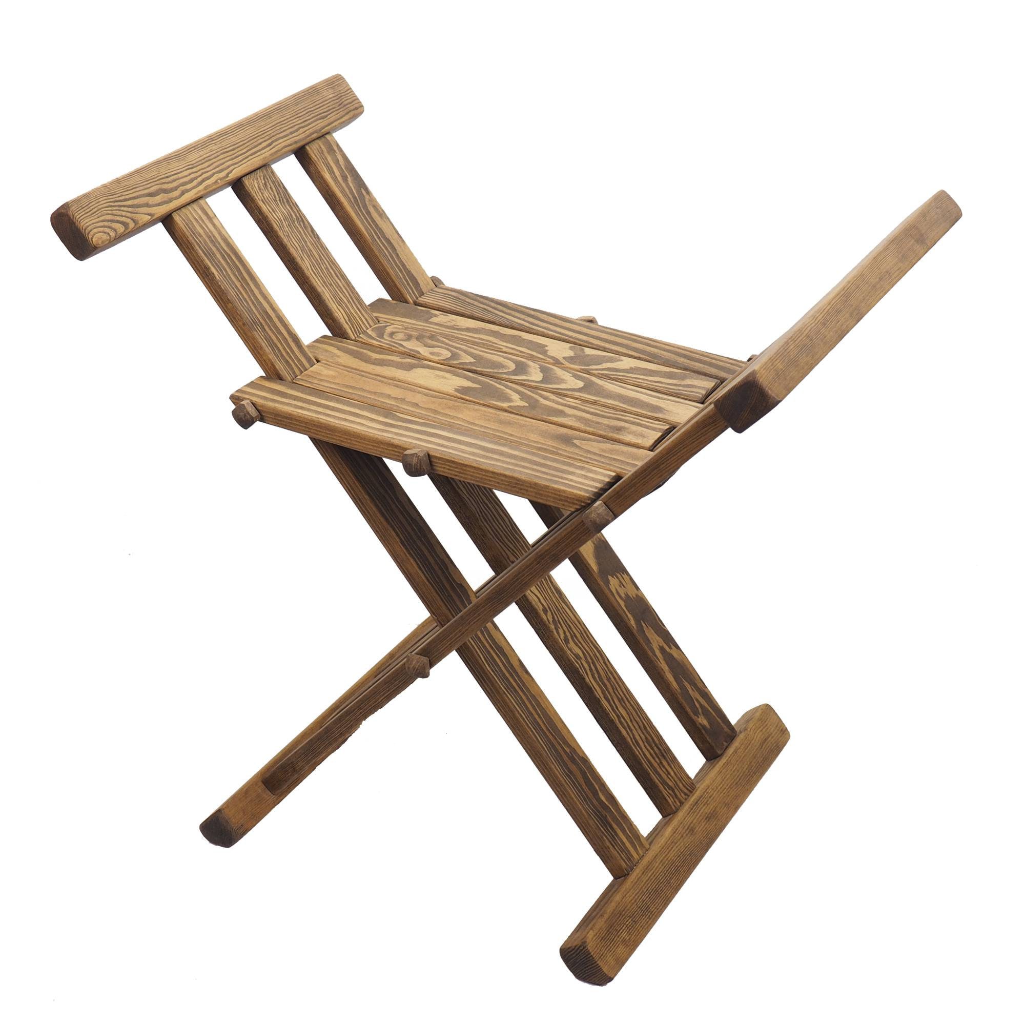 Old dark oak color Wooden medieval viking folding chair, Personalized color