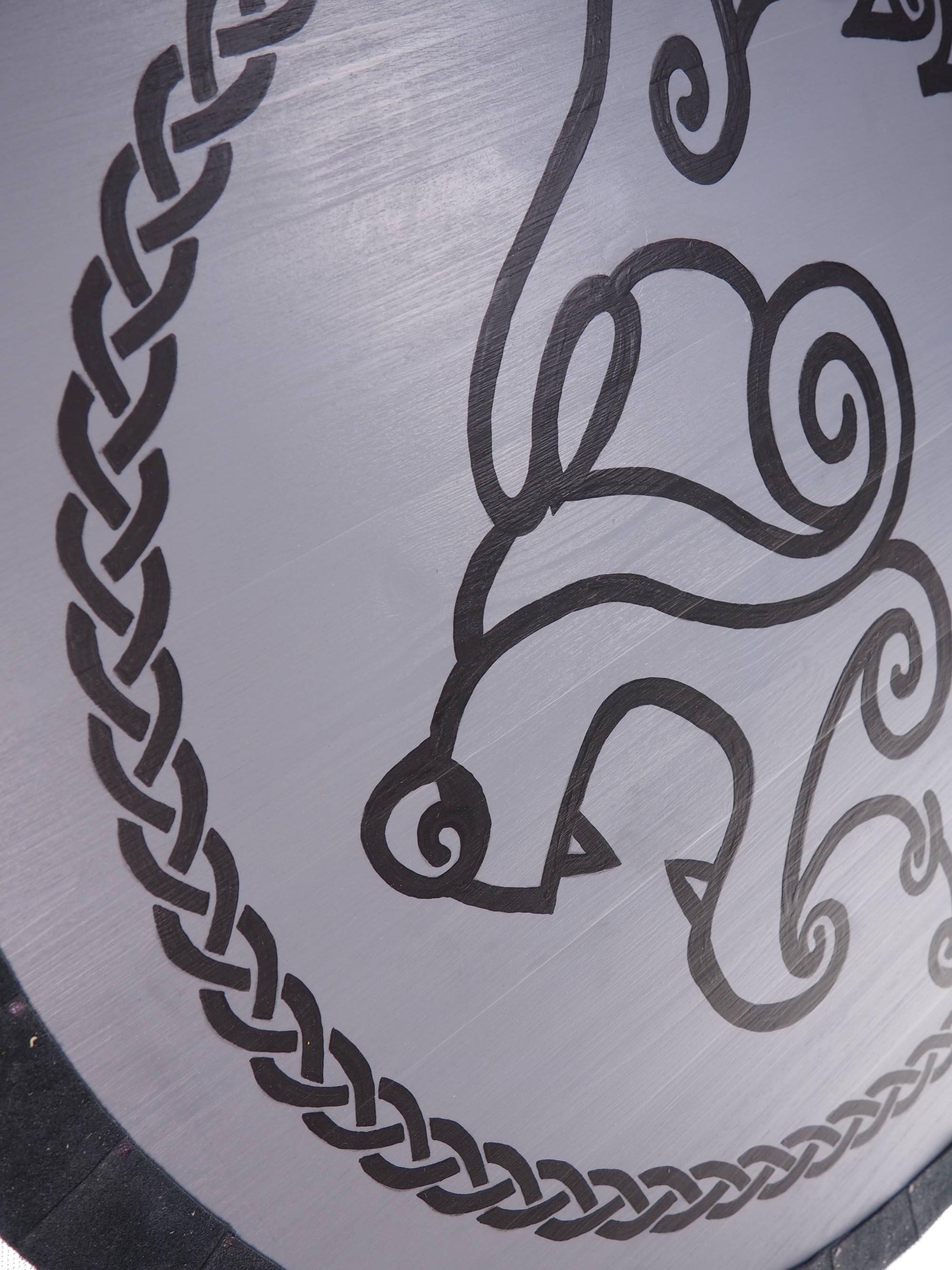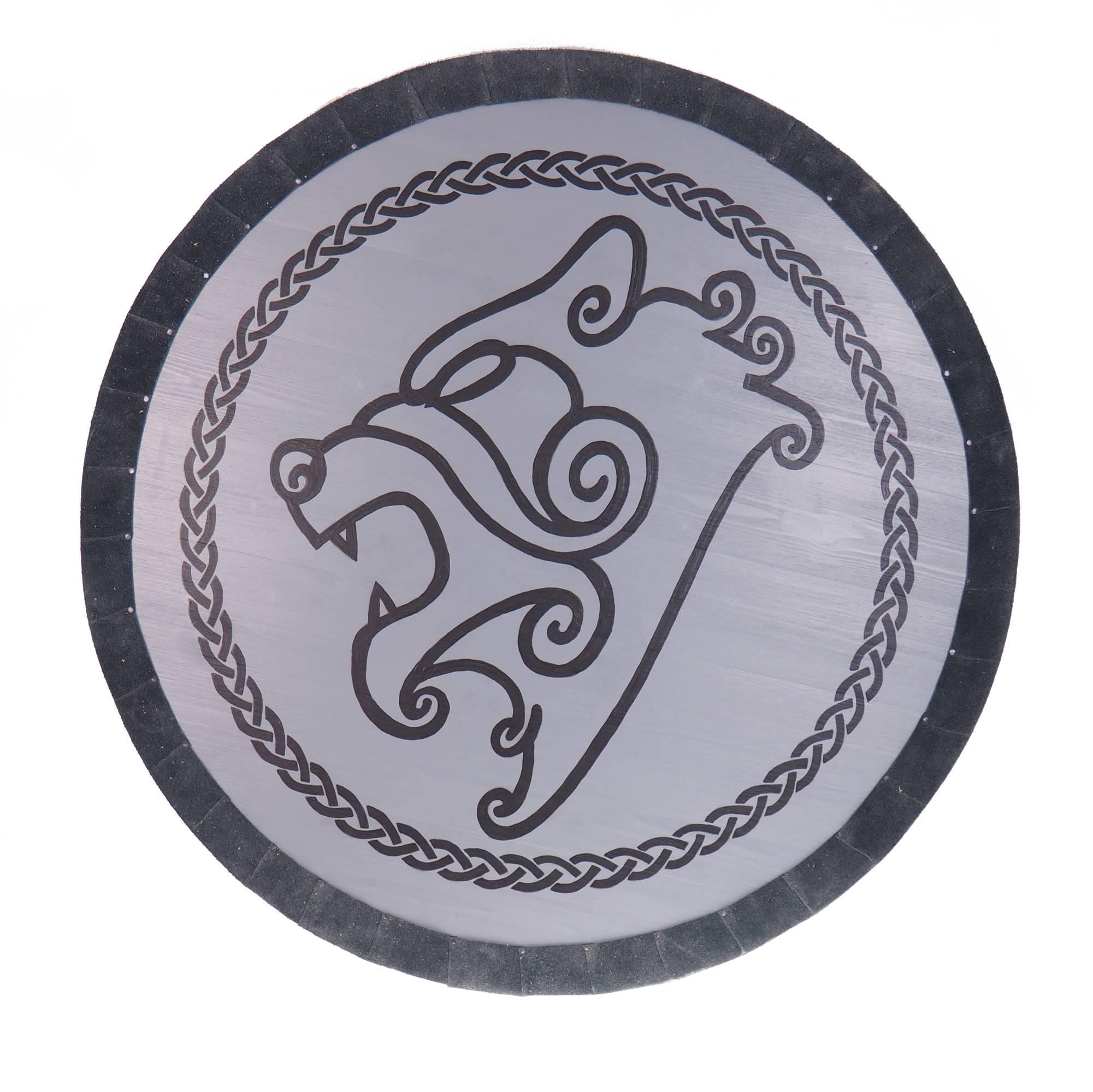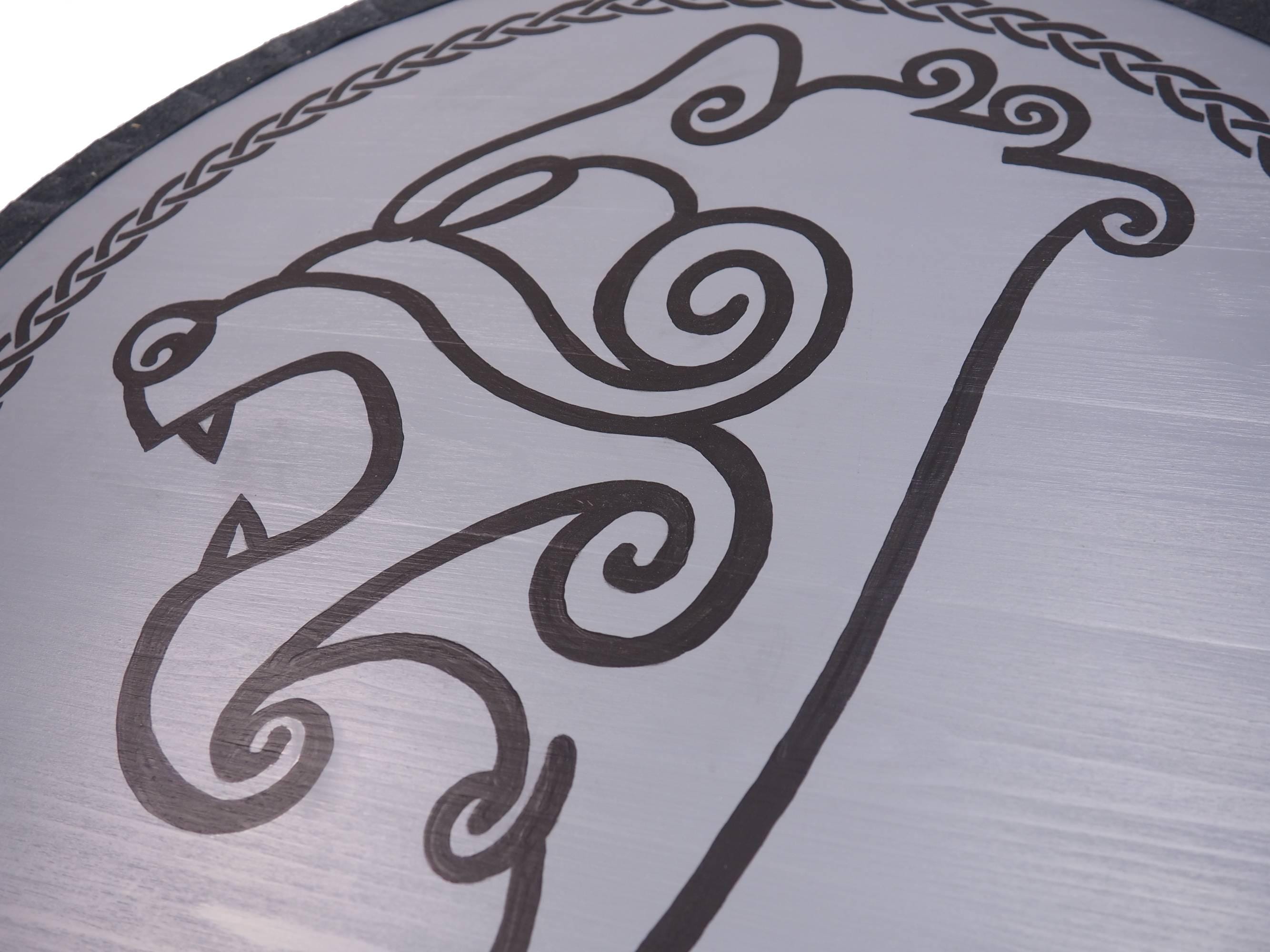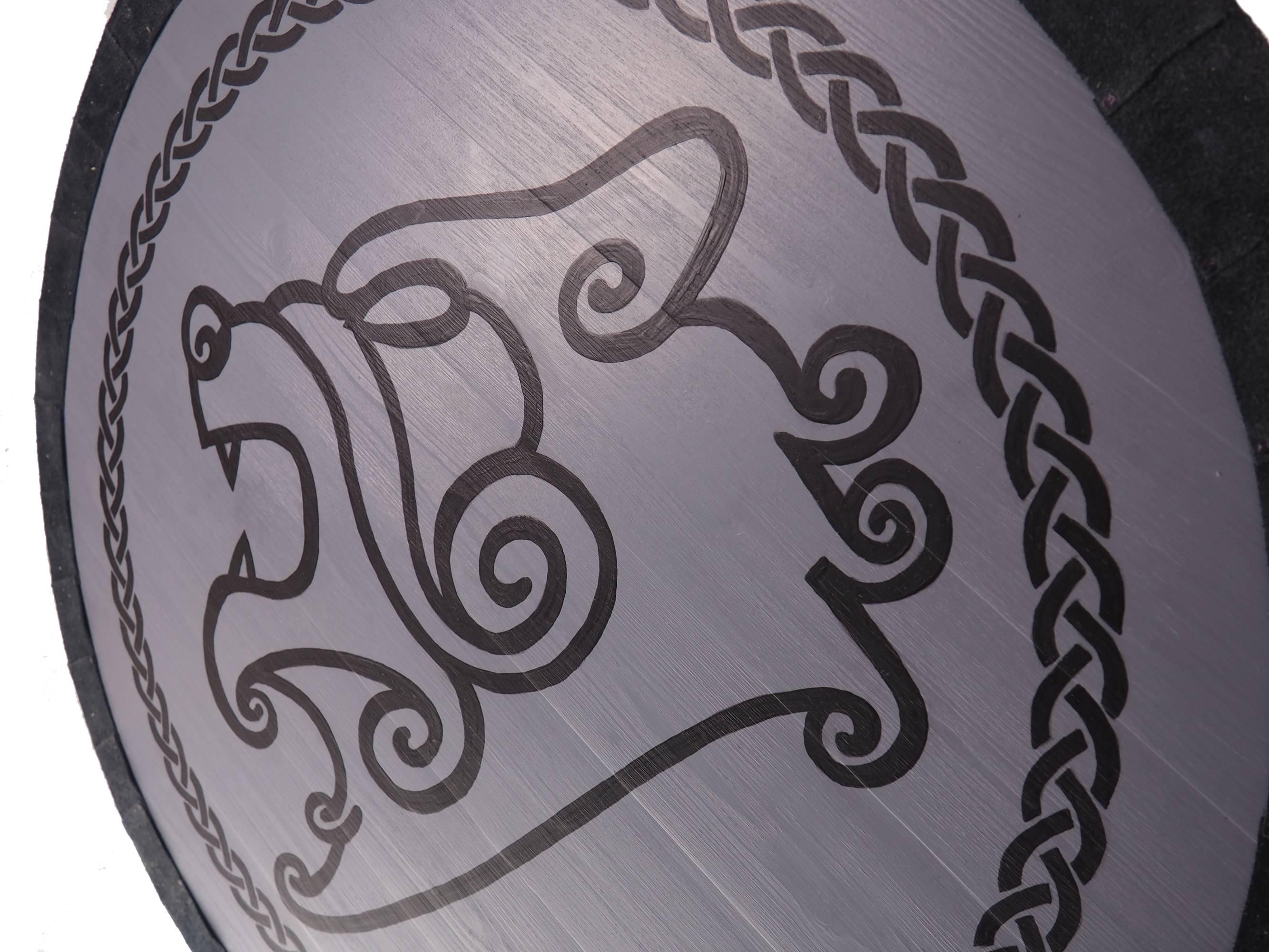 This hand painted personalized crest shield - from your picture or from our design, big viking shield can be perfect solution for improving design of your crest, company or pub wall. We can draw on it almost everything. Construction based on archaeological founding. Painting based on your need and imagination. For fighting, Larps and also as wall decoration. Made from two layers of Norwegian pine, cross glued together fro greater durability. Handler covers whole parts of shields and more support to the shields construction. Edge covered with thick leather for preventing damaging the edge of the shield.