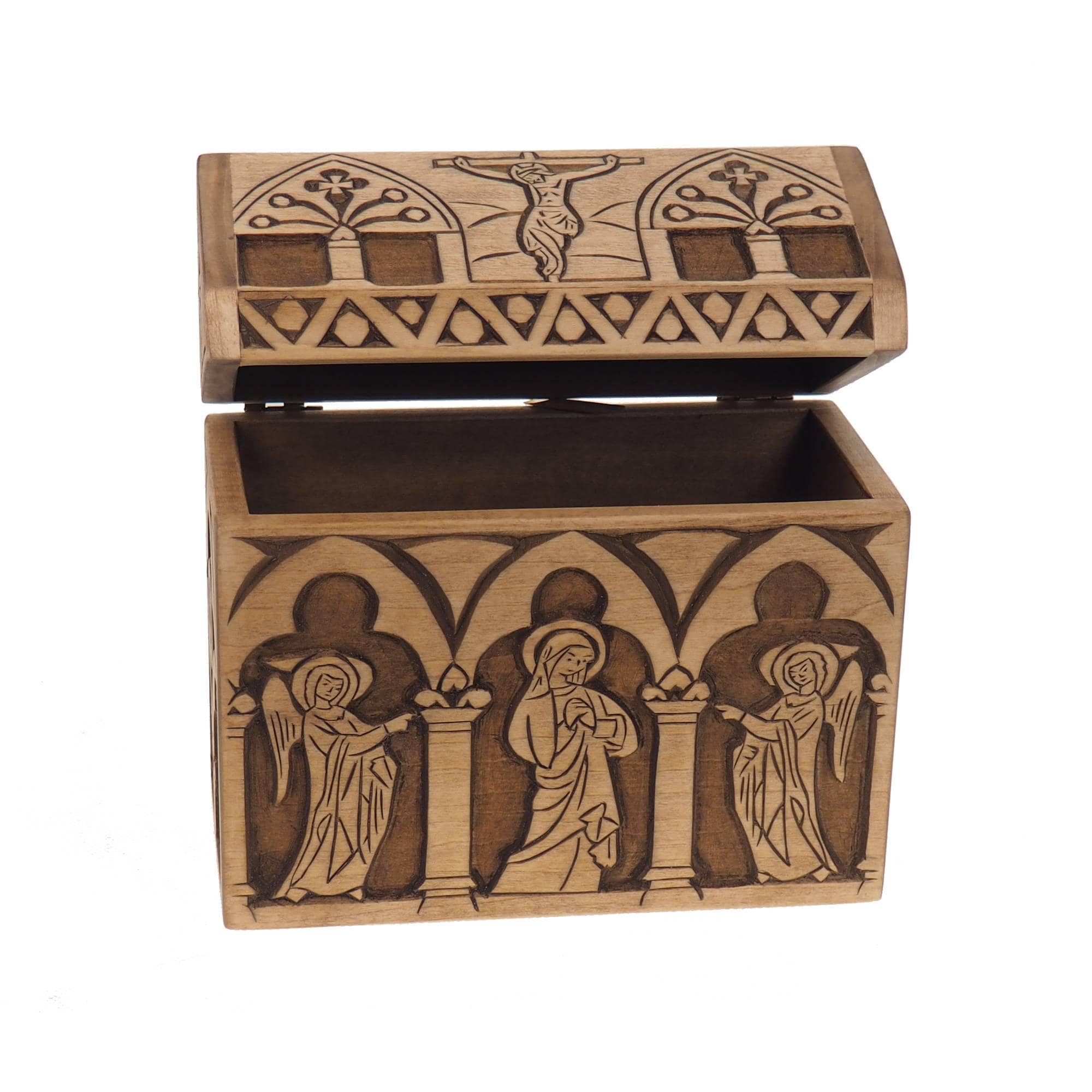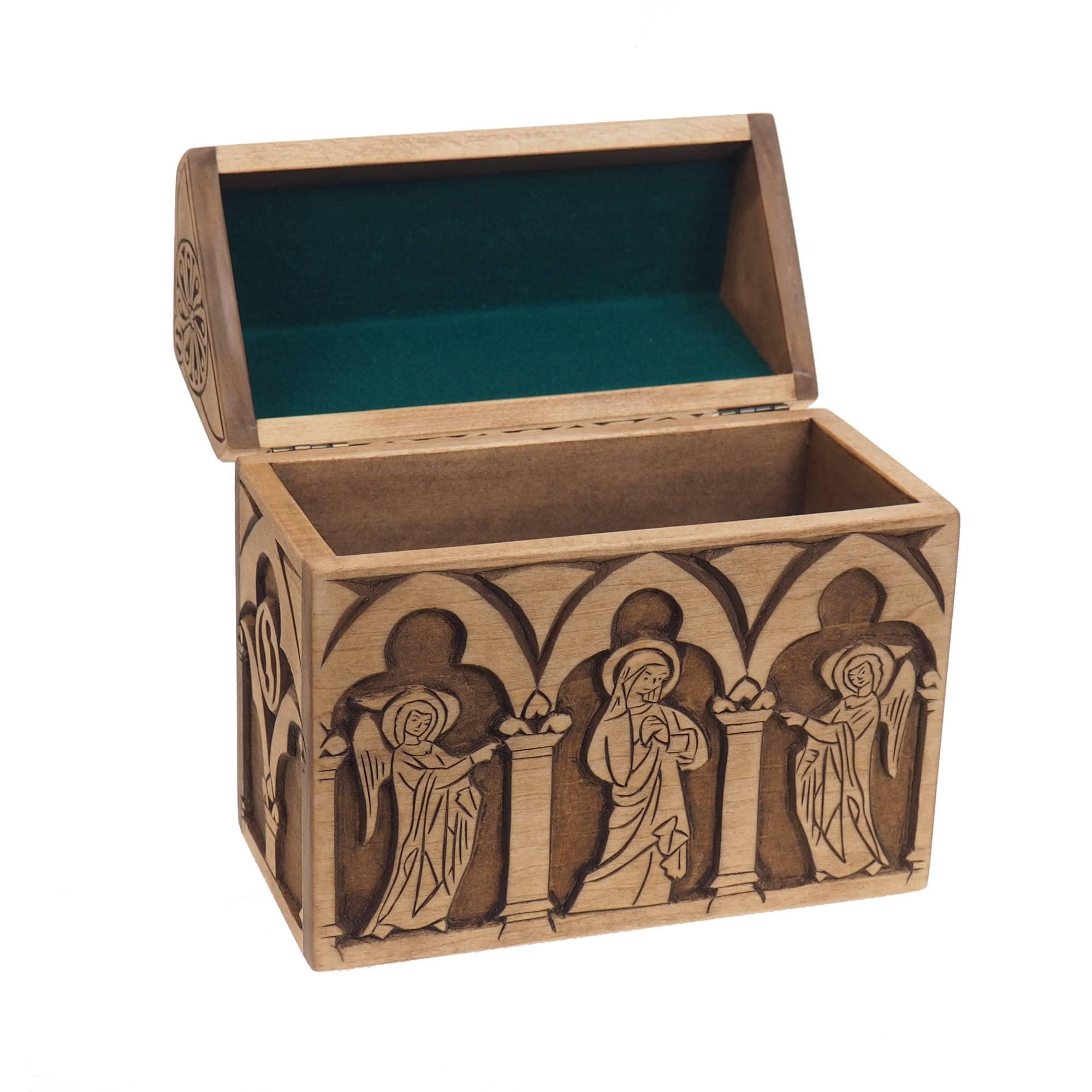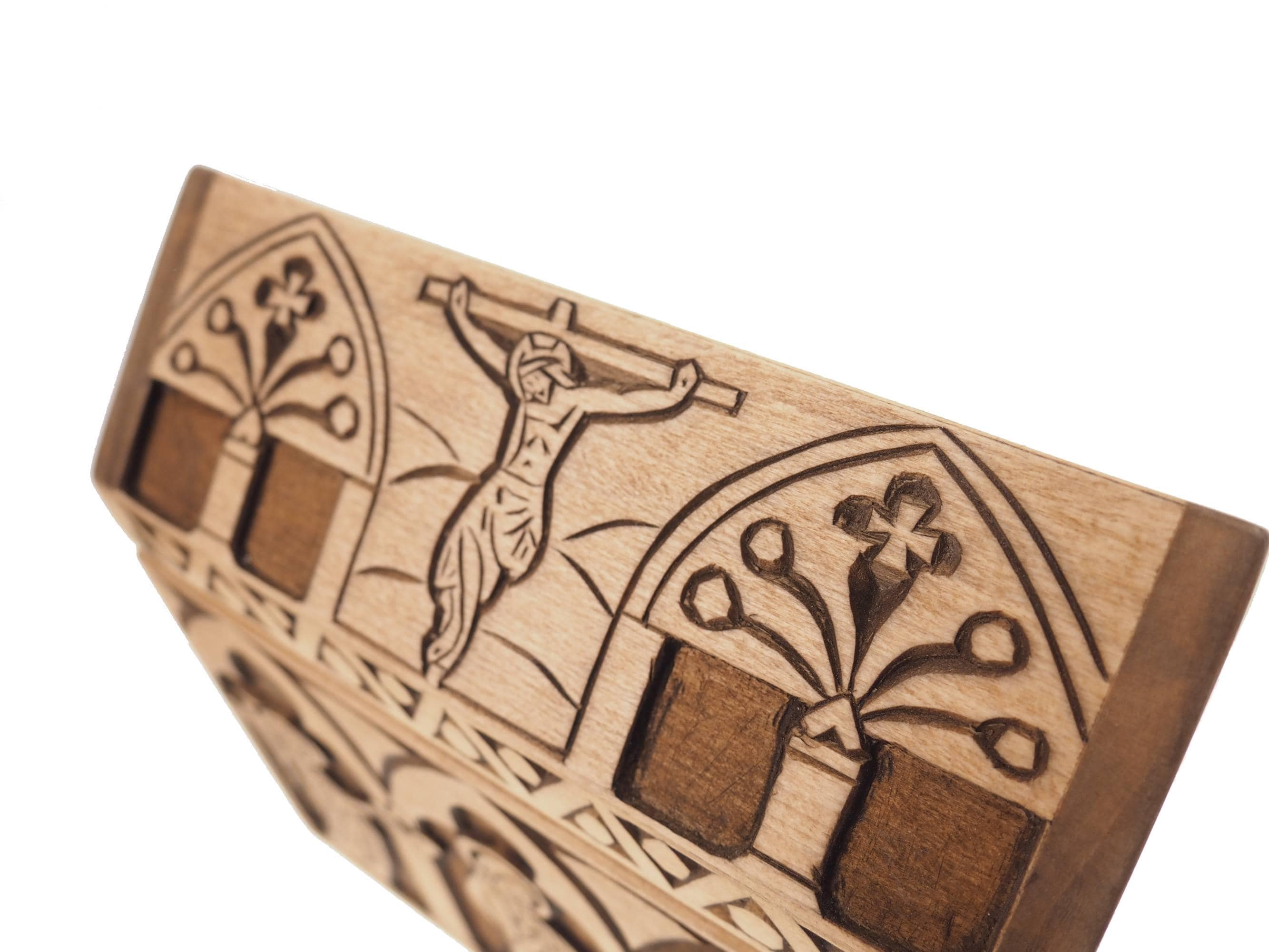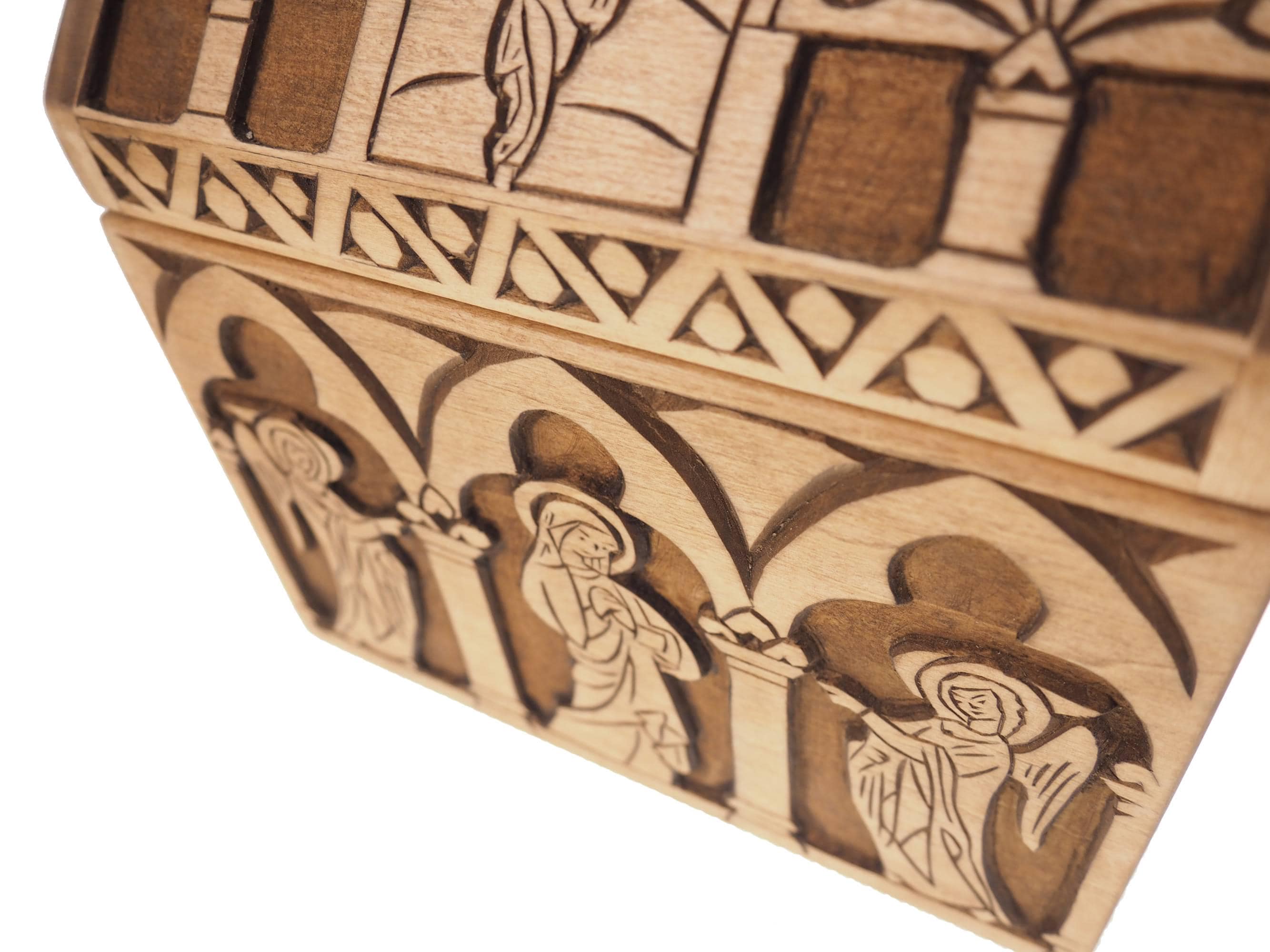 Hand Carved Apple Wood Reliquary Box, Christ and angels, Medieval Knight Codex