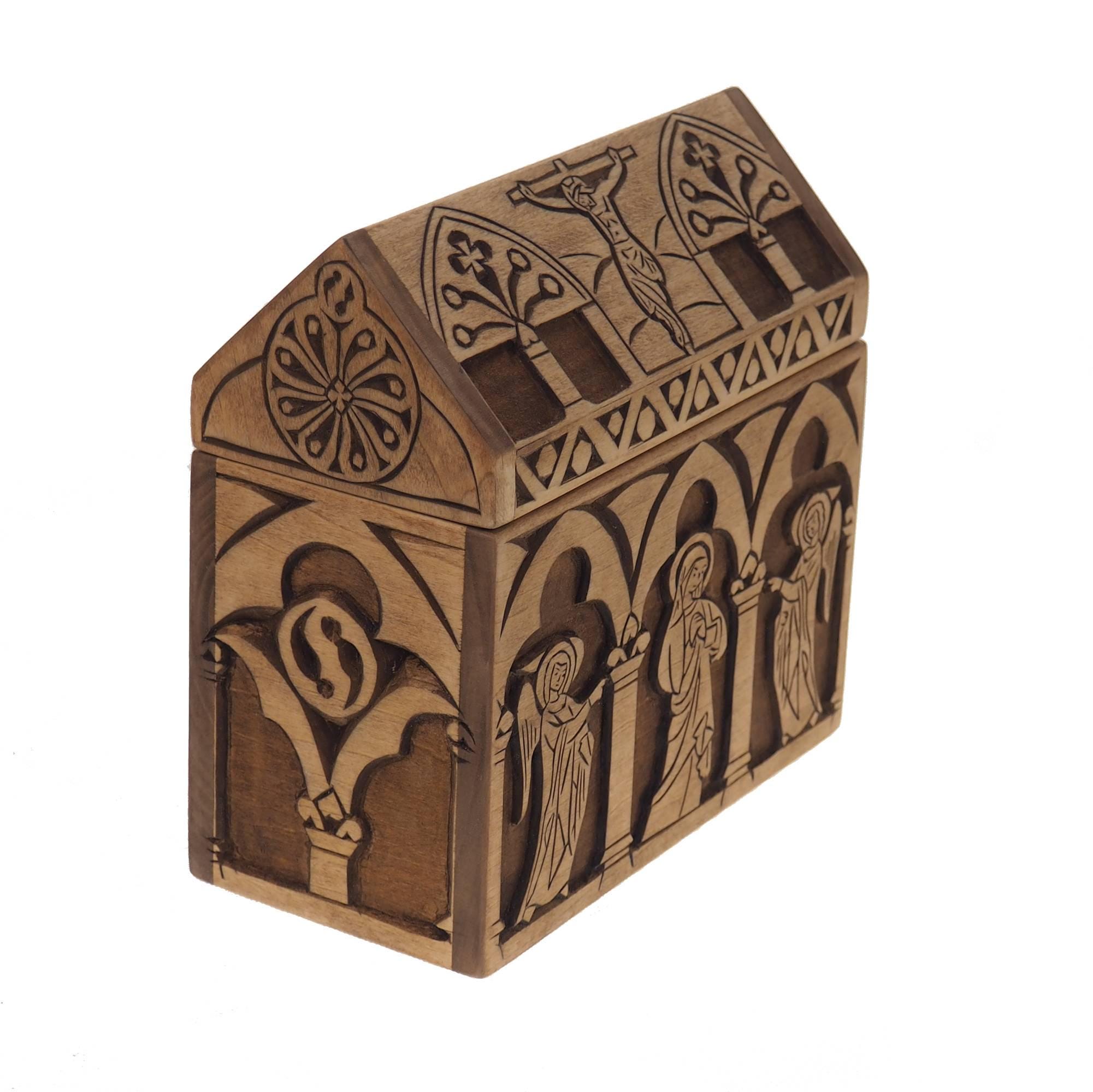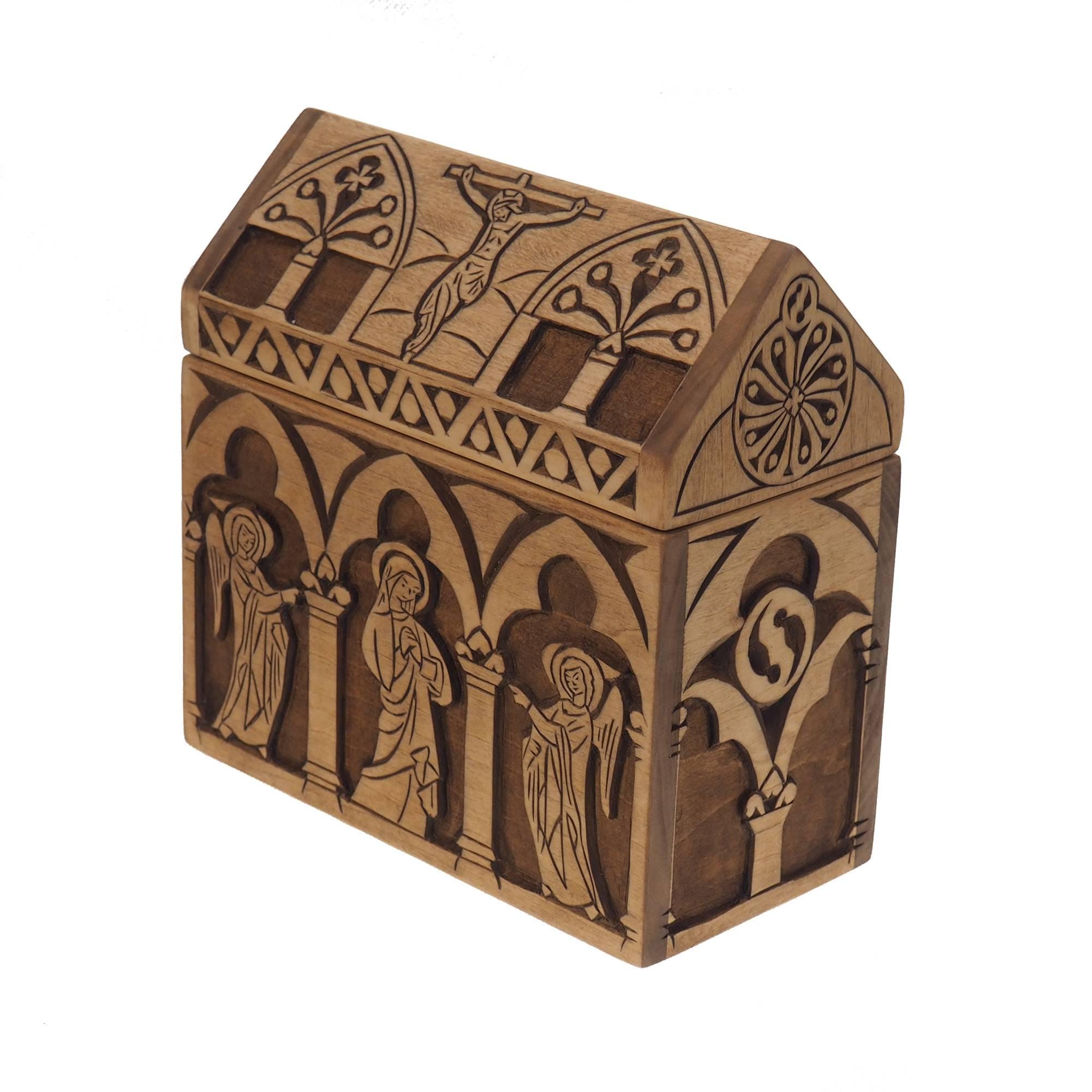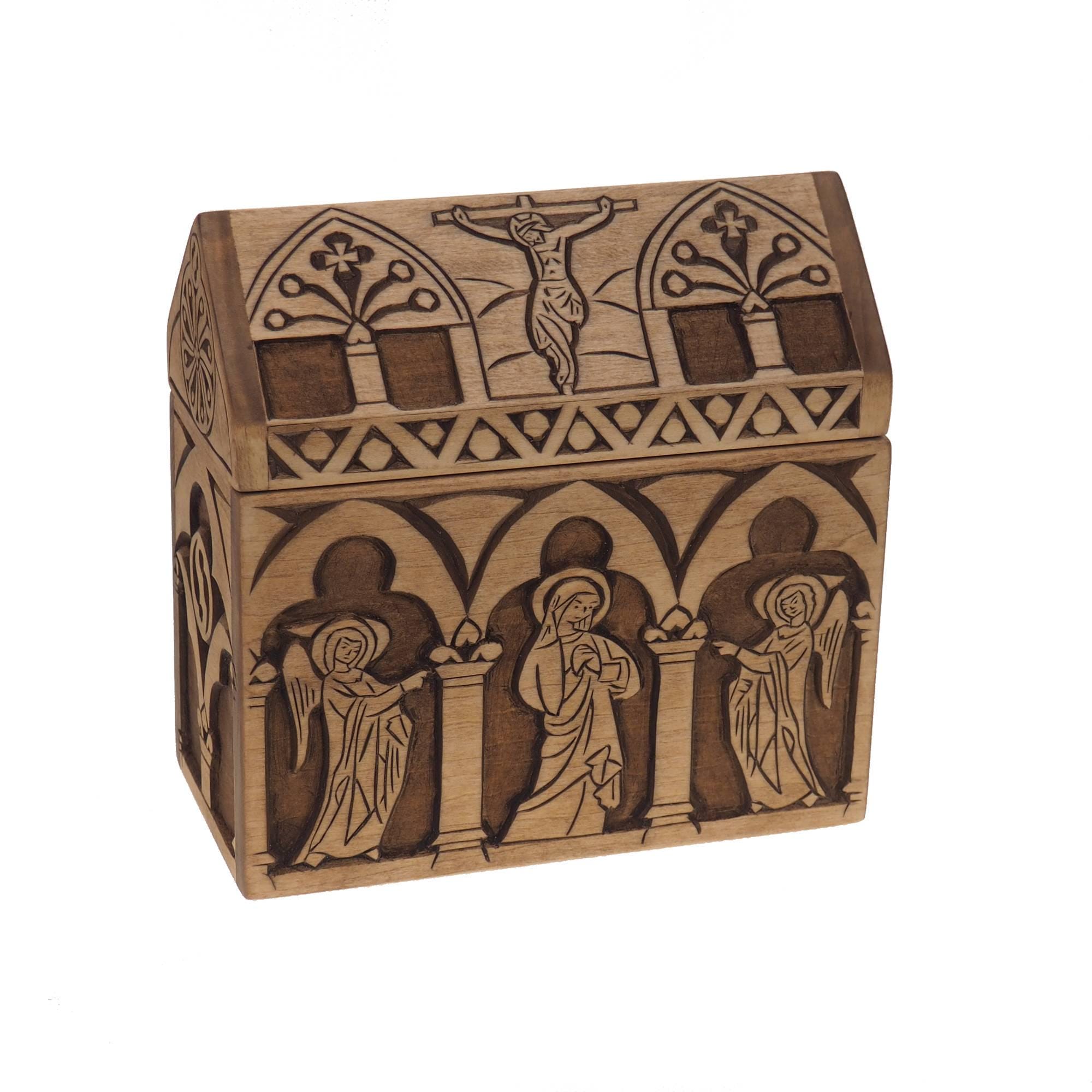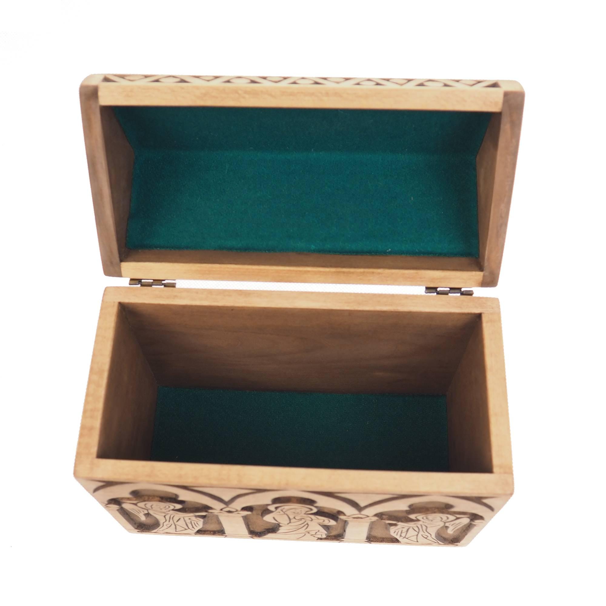 Hand Carved Apple Wood Reliquary Box, Christ and angels, Medieval Knight Codex